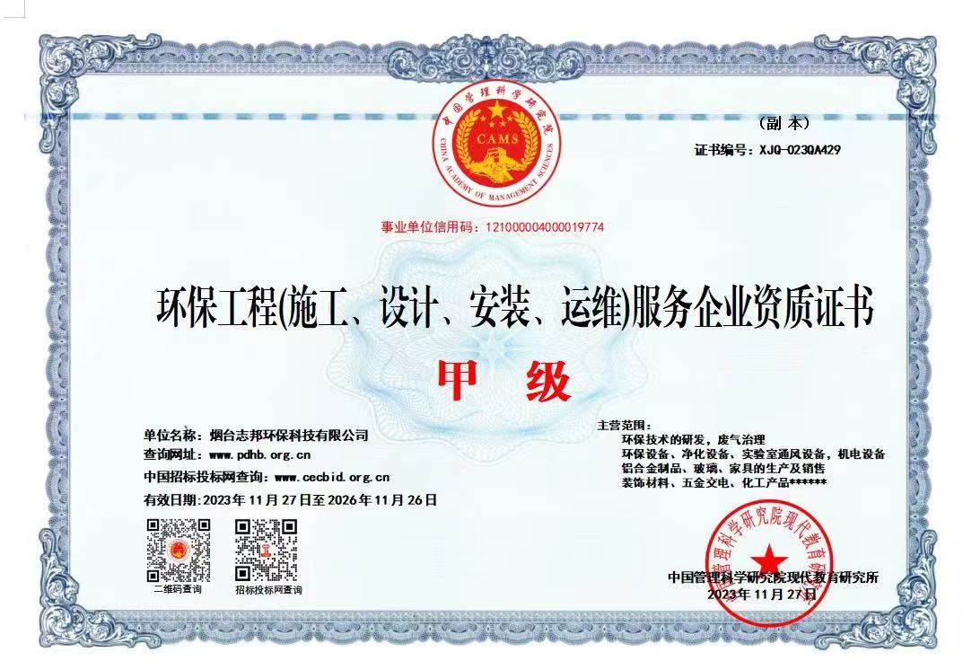 環保工程(施工、設計、安裝、運維)服務企業資質證書